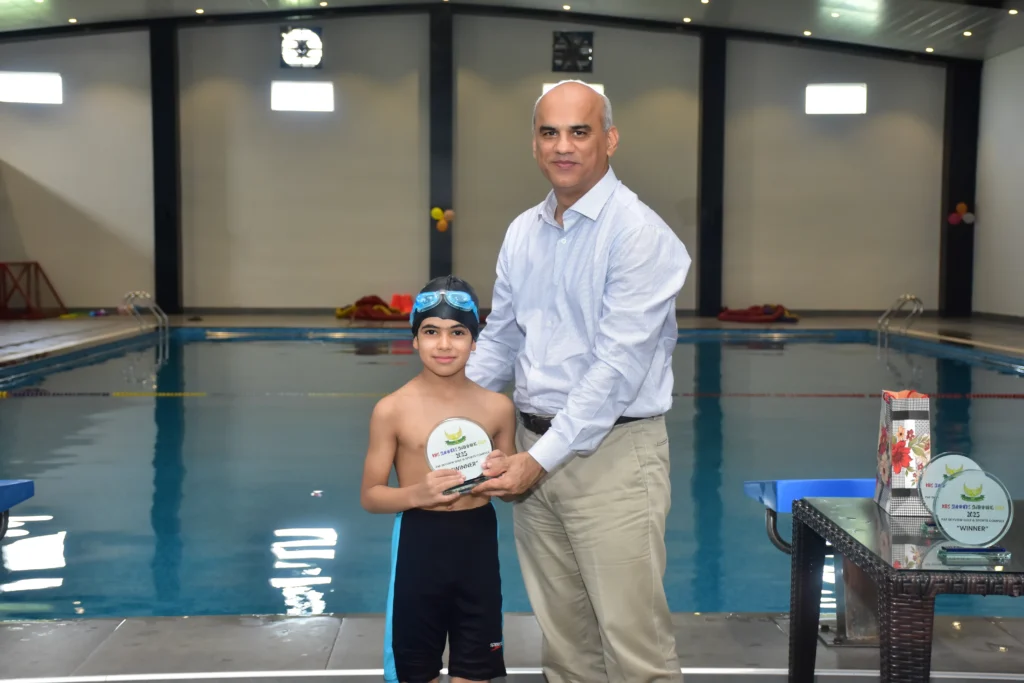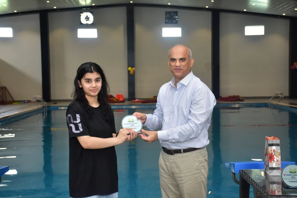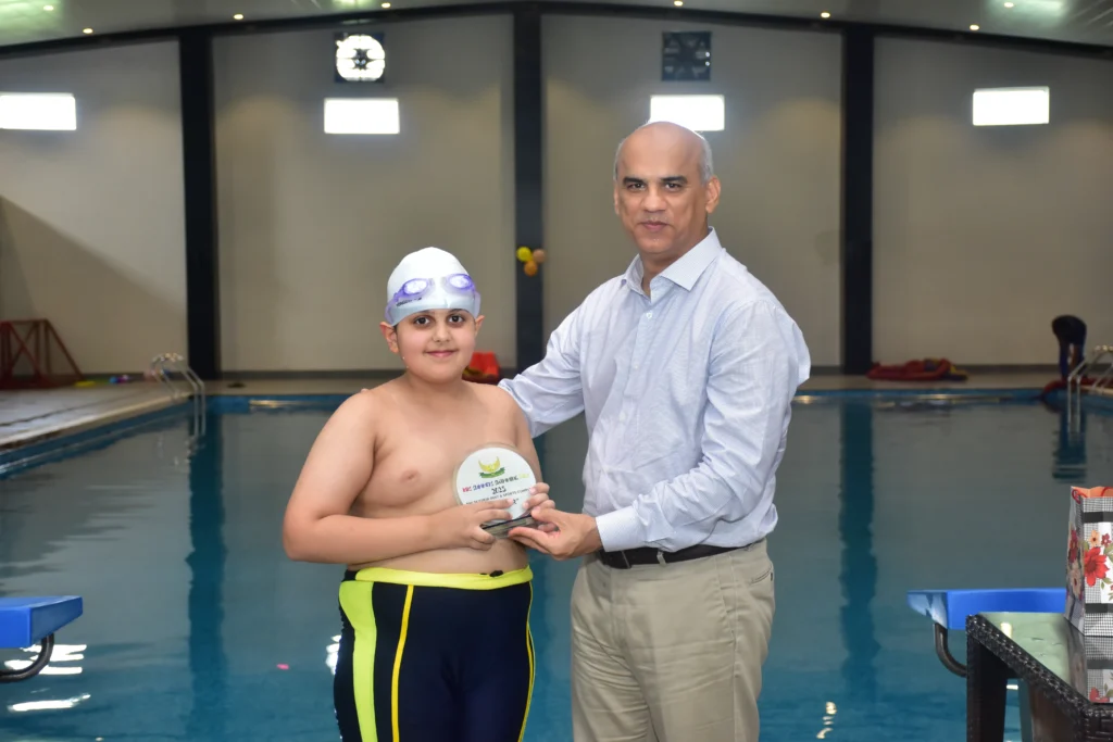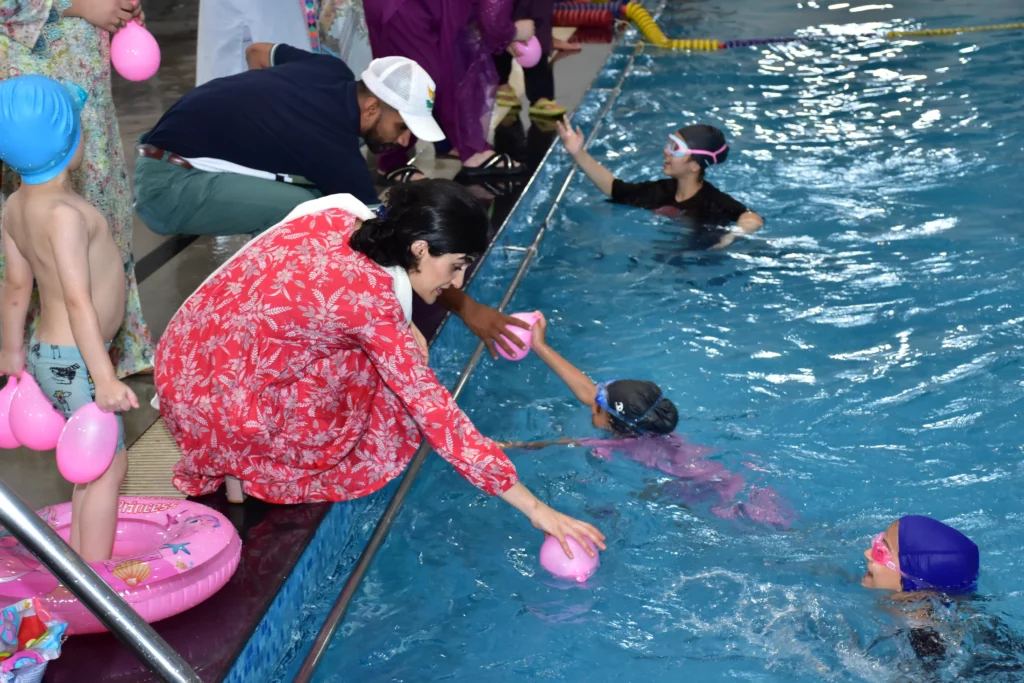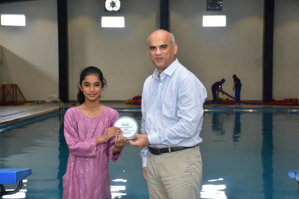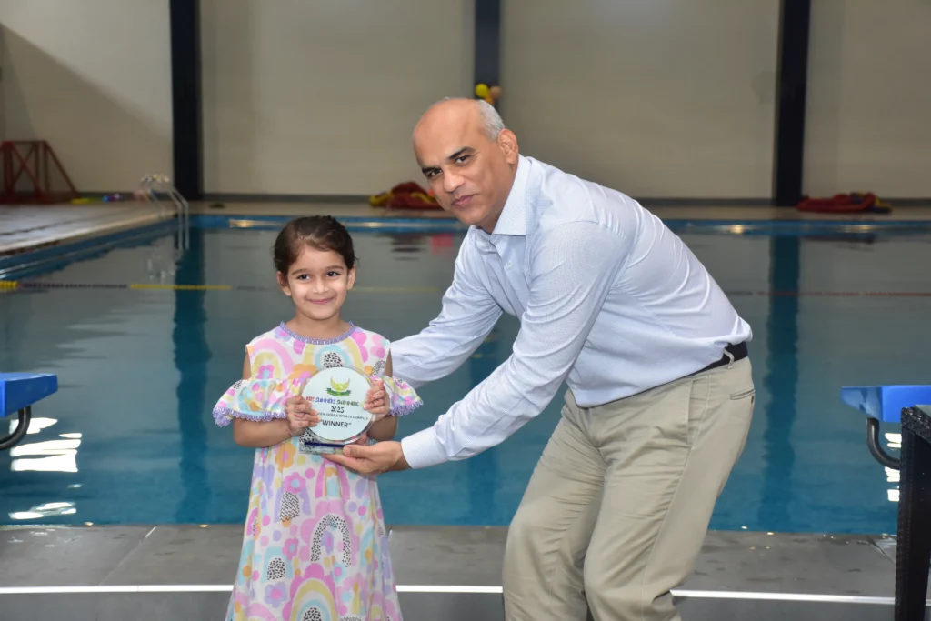 PAF Skyview Golf & Sports Complex have always promoted participation in sports and a healthy lifestyle. In the same spirit, PSG & SC organized a Kids Summer Swimming Gala 2025. The activity aimed at promoting swimming among the children and provide them with a healthy opportunity to learn basic and advanced swimming techniques. The summers camp also focused on group fun activities and games to extract maximum learning value and encourage all children to participate with full zest and fervor. The camp was conducted under supervision of qualified male and female trainers and special emphasis was laid upon pool safety and discipline. During the course of 01 Month long camp, basic and advanced swimming techniques were demonstrated. The children also participated in underwater diving, breathing control exercises, water polo and swimming competition. On the conclusion of the camp, a Grand Finale was arranged were 33 participant of age ranging from 5-15 years participated in Freestyle swimming race, Floater race, find the coin, Retrieve the balloon and Water polo competitions. The parents also participated along with their children in fun games. After the colorful competitions, winners were awarded with prizes and gifts by the Chief Guest.